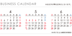 定休日のご案内【2026年4月~6月】